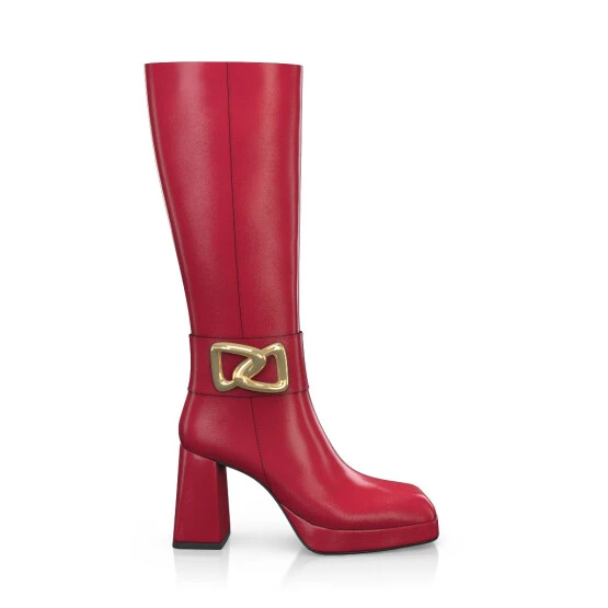 Bottes à bout carré, plateforme et talon évasé – faites à la main sur commande individuelle.