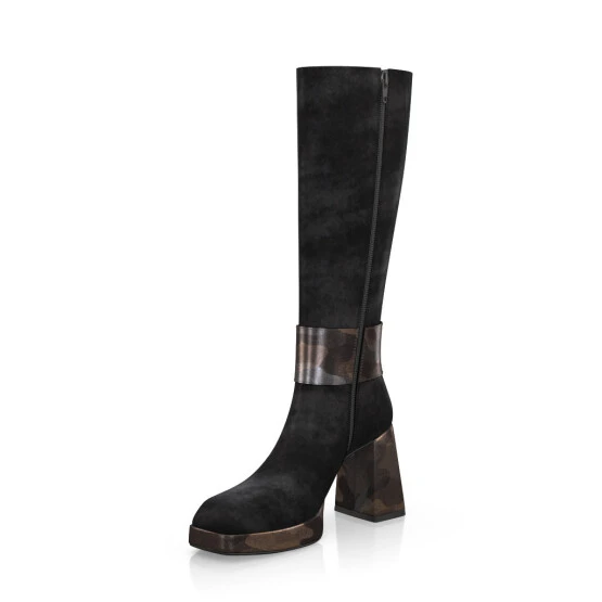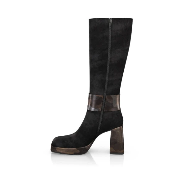 Bottes à bout carré, plateforme et talon évasé – faites à la main sur commande individuelle.