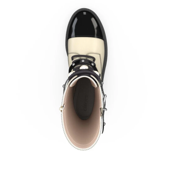 La partie inférieure est en cuir, cuir verni. La partie intérieure / la doublure est en cuir.